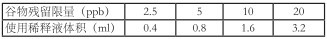 1. 谷物:任取 5g 以上有代表性樣品并粉碎過 20 目篩,準(zhǔn)確稱取 2.0g 均勻粉碎試樣于配套離心管中,再準(zhǔn)確加入 4ml 純凈水和 4.0ml 乙酸乙酯,將瓶塞蓋緊密封,充分振蕩 5min,4000rpm 離心 1min 得上清液,將上清液用吸管移出 2.0ml 到蒸發(fā)皿或小玻璃杯中,用電吹風(fēng)吹干上清液,再根據(jù)樣品的種類按以下規(guī)定的稀釋液量,用鋁箔袋內(nèi)配套吸管反復(fù)沖洗,徹底溶解杯底所有的固體,此溶解液為樣品提取液即檢測液。考慮不同樣品對黃曲霉毒素 B1 的最高含量要求,請參考下表進行用稀釋液溶解杯底固體: