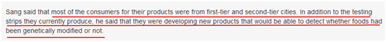 “在過去的一年里,食品安全快速檢測產品已經被越來越多的人使用”,桑總介紹說,“大多數人因為無法支付第三方檢測平臺和專業實驗室的高額費用,轉而使用此類方法。目前使用這些快檢產品的消費者大多來自一線和二線城市,我們一直不斷研發新產品,目前正在研發能夠檢測轉基因的產品。”