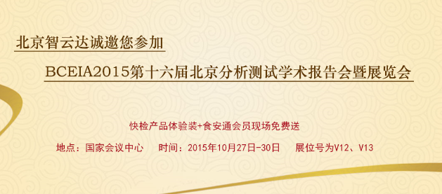 第十六屆北京分析測試學術報告會暨展覽會(BCEIA 2015)于2015年10月27日-30日在國家會議中心如期舉行。北京智云達科技有限公司受邀參展,展位號為:V12、V13,智云達誠邀您蒞臨參展。