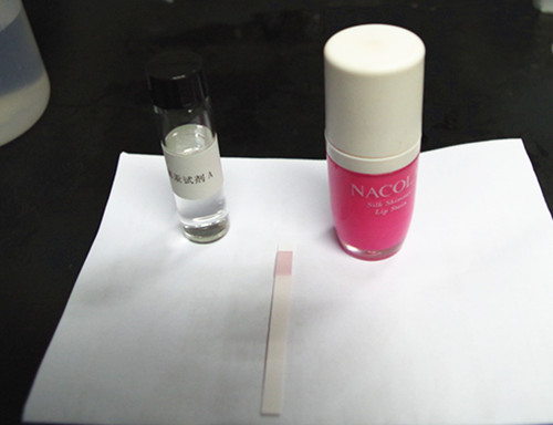 由于唇彩有顏色,因此加入稍許活性炭于檢測(cè)液中,攪拌均勻,過濾,靜置。取上清液進(jìn)行檢測(cè)。