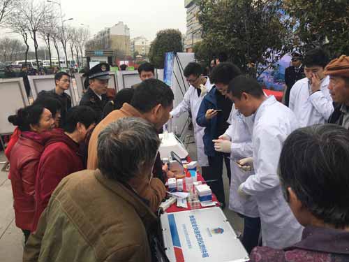 活動現(xiàn)場發(fā)放宣傳材料的同時,還有現(xiàn)場體驗檢測服務(wù)。在CEC(安徽)食安體驗中心的檢測咨詢臺前擠滿人群。消費者將自己從各方購買的果蔬等食品送到現(xiàn)場檢測,幾個技術(shù)人員同時操作,部分消費者在一旁等待檢測,現(xiàn)場異常火爆。