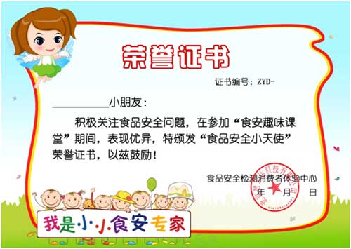 活動結(jié)束后,我們體驗中心的老師還為參加活動的同學(xué)準備了食安天使小證書。我們的趣味課堂不是要大家不要吃零食,遠離帶有色彩的食品,而是讓大家知道這些食品中可能隱藏的健康危害,適量食用,最后同學(xué)們都收獲滿滿。