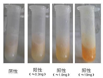 若反應溶液出現橙黃色、橙紅色,可判定樣品中含有喹諾酮類物質,為陽性(+);否則判為陰性(-)