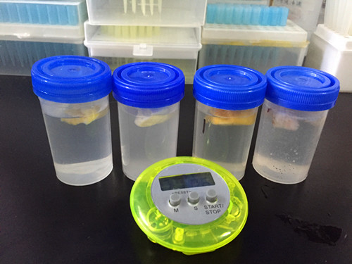 針對鄭先生的擔(dān)心,我們就先對水果干進(jìn)行二氧化硫定性的分析,若有存在再進(jìn)行定量分析。首先我們稱取每種凍干1g,剪碎加水49ml進(jìn)行稀釋提取,靜置10min備用;